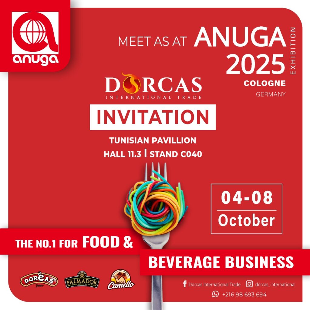 DORCAS International Trade is proud to announce its participation in ANUGA 2025, the world’s leading trade fair for the Food & Beverage industry, taking place from October 4 to 8, 2025, in Cologne, Germany. Visit us at: Tunisian Pavilion – Hall 11.3 | Stand C040 As a key player in